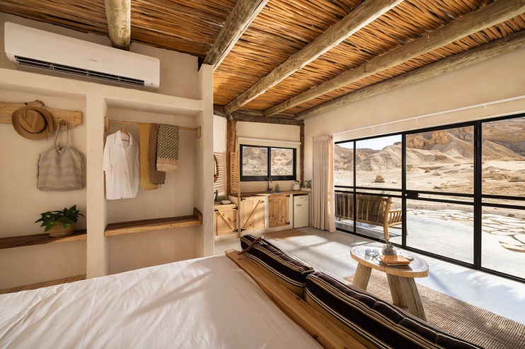 בלבונה שבע בקתות אירוח מפנקות המציעות לאורחים קרבה לטבע בנוחות מלאה. הבקתות פרושות בחצי ירח ופונות לנוף של צוקי לבונה, משתלבות בהרמוניה עם המדבר.